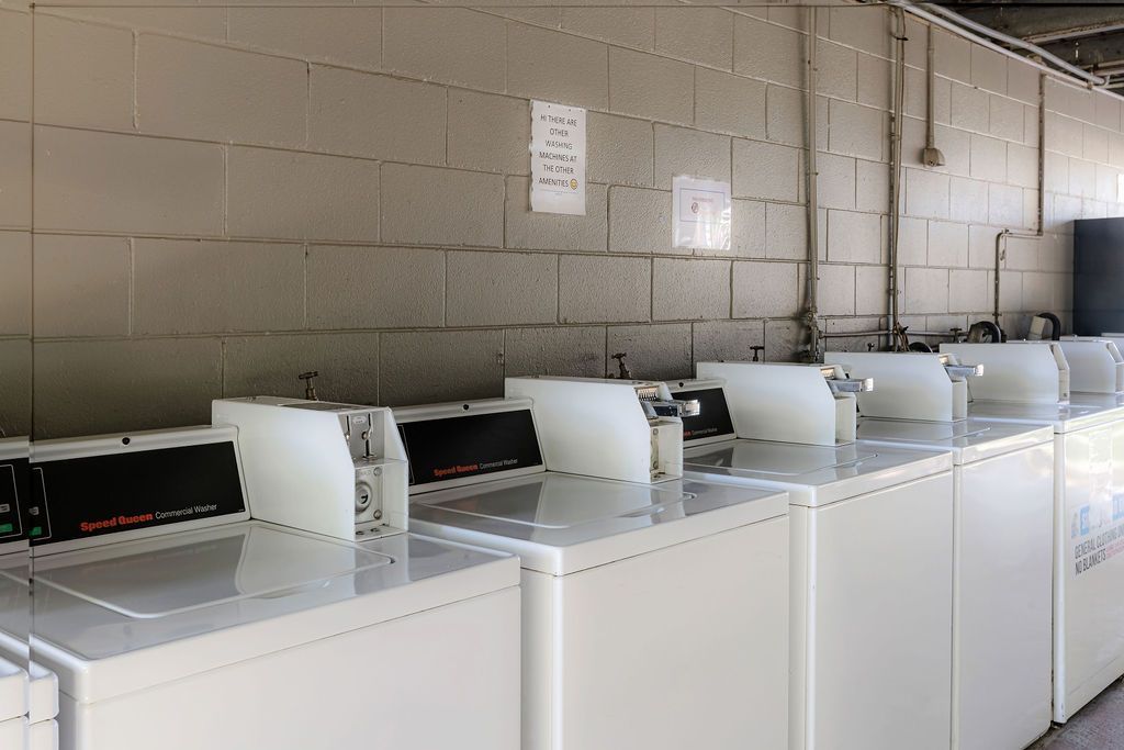 - Large laundry with coin operated washing machines and dryers, washing tubs , folding area , iron and ironing board