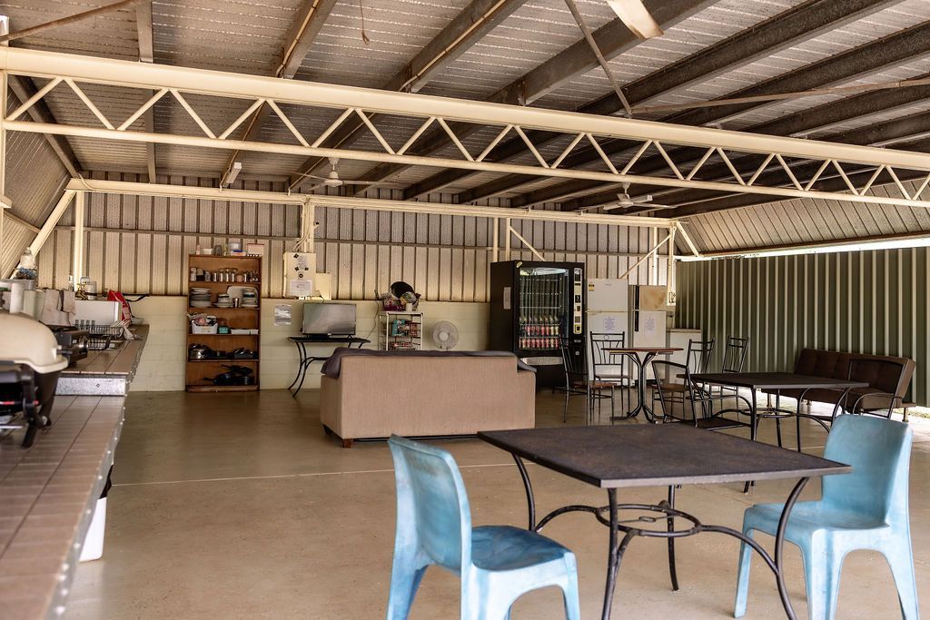 - 2 large camp kitchens with fridges, toasters, microwaves ,electric jugs and gas BBQ both with large eating area with fans